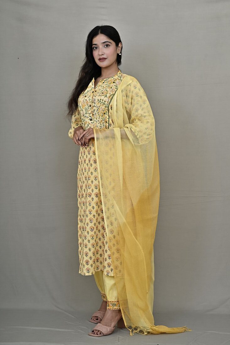 Pure Cotton Top and Bottoms with Kota Doriya DupattaSleeves: 3/4 th