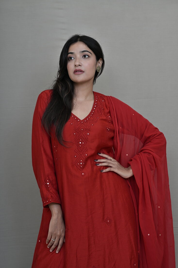 Crimson Red French knot Suit set