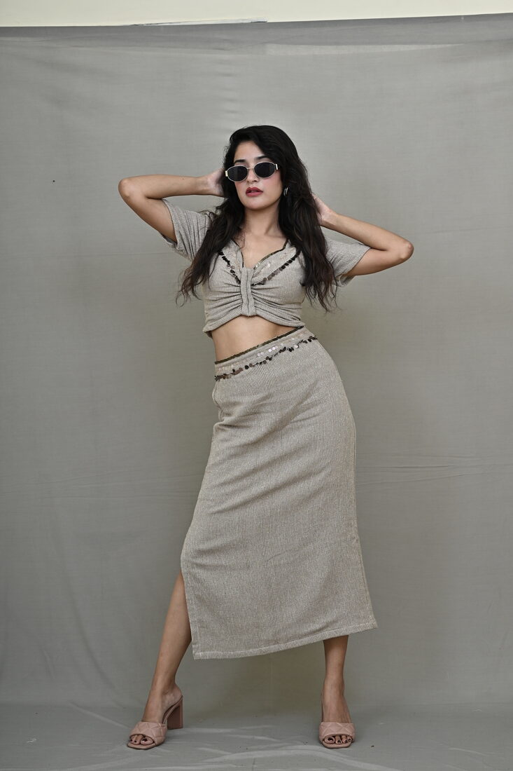 Be the first to review “Ruched blouse with straight skirt co-ord”